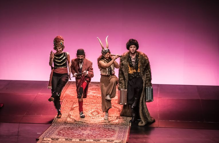 V mesto, naravnost med nas, prihaja karavana. Ne vemo, od kod prihaja in kam gre. Vemo pa, da prav tako skrbno, kot druge karavane tovorijo najdragocenejše blago – žafran, sol, čaj ali čokolado, naša išče in tovori zgodbe. In na svoji poti najde takšne za vse priložnosti in potrebe: zgodbo za dober začetek, zgodbo, ki te pogreje, takšno, ki te potolaži, pa ki te razburi, zgodbo, ki izpolnjuje želje, ki prestraši, zgodbo, ki išče in na koncu najde srečen in pravičen konec. Štirje pripovedovalci in trije živahni glasbeniki vsepovsod stikajo za zgodbami in v pripovedi vpletajo zvoke, slike, predmete, občinstvo; da se znajde v zgodbi, je njim in nam vendar na voljo ves svet.