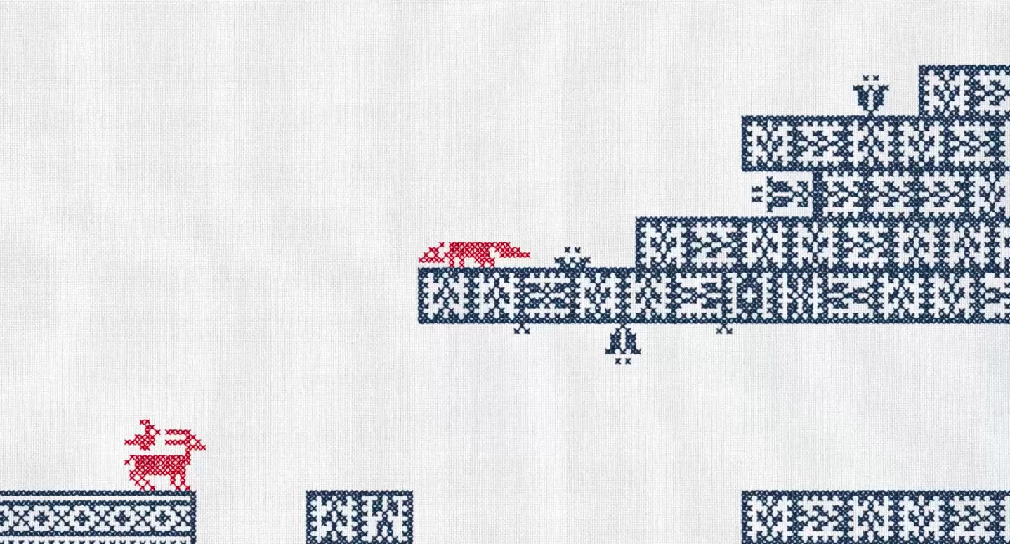 Kratka križkano izvezena zgodba o prijateljstvu in izdajstvu med ptičico, kozo in lisico, ki je nastala po navdihu pregovora »Pravega prijatelja spoznaš v nesreči«.