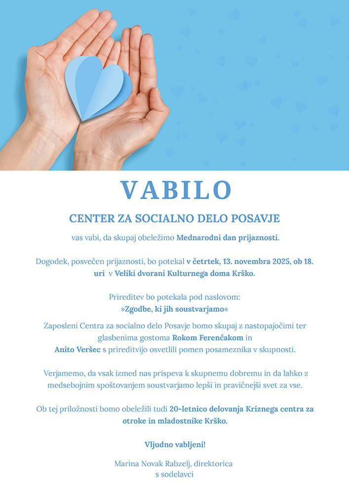 Dogodek, posvečen prijaznosti, bo potekal v četrtek, 13. novembra 2025, ob 18. uri v Veliki dvorani Kulturnega doma Krško.